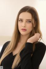 A woman in a black lingerie posing for the camera.